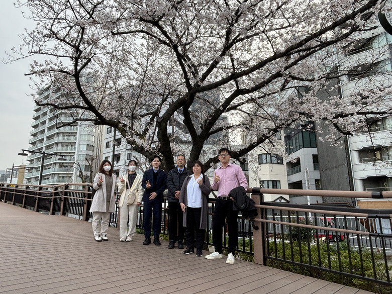 ちょうど桜が見頃を迎えており、満開の桜の木の下で記念撮影。