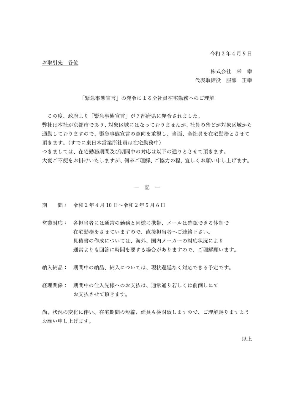 緊急事態宣言を受けての弊社対応について